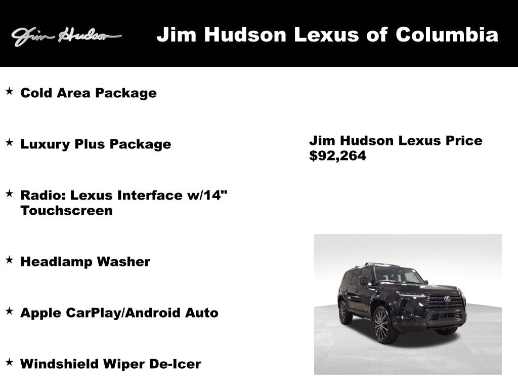 2025 Lexus GX 550 Luxury+ Apple CarPlay/Android Auto, Cold Area Package, Headlamp Washer, Luxury Plus Package, Radio: Lexus Interface w/14" Touchscreen, Windshield Wiper De-Icer.