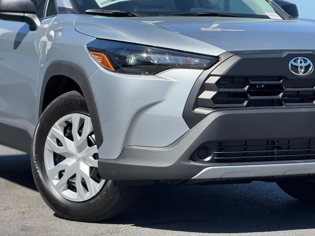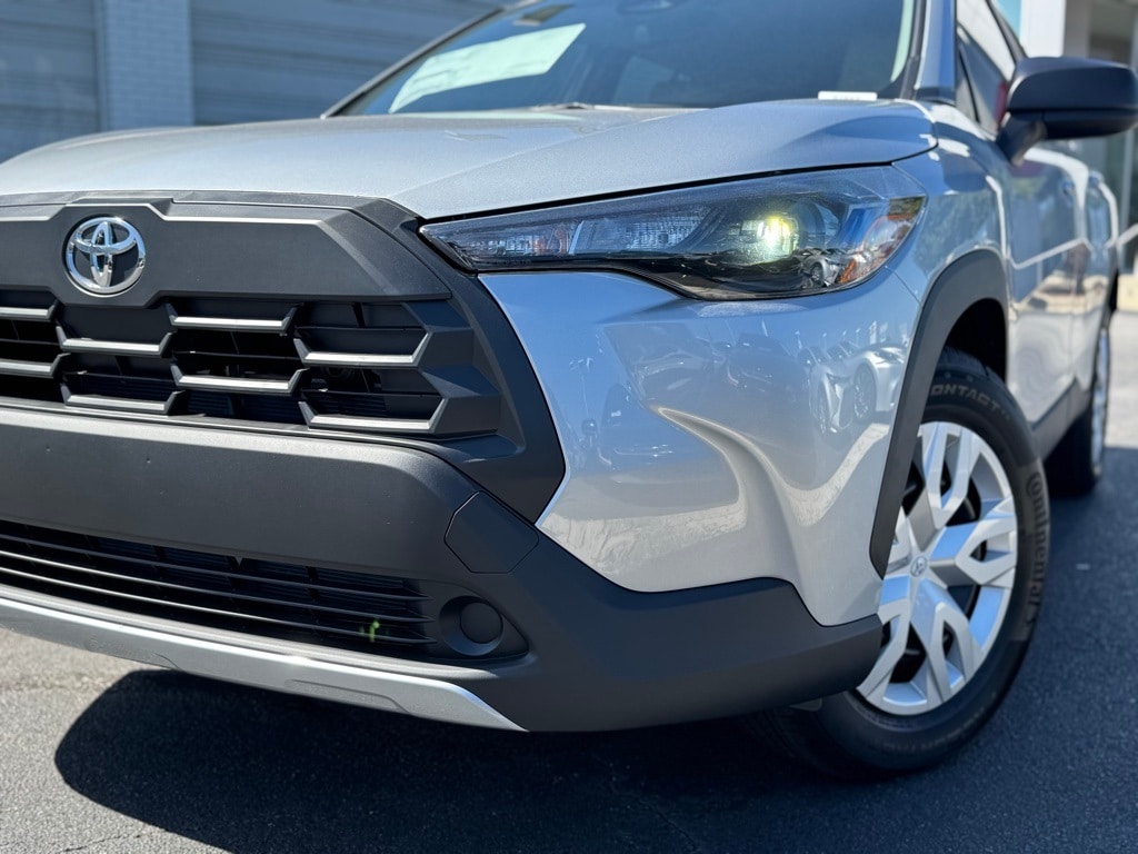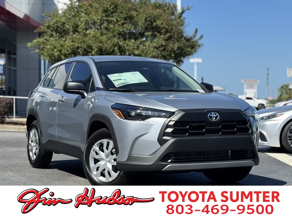 Silver 2026 Toyota Corolla Cross L FWD CVT 2.0L I4 PDI DOHC 16V LEV3-SULEV30 169hp 17" Steel Wheels w/Wheel Covers, 4-Wheel Disc Brakes, 6 Speakers, ABS brakes, Air Conditioning, AM/FM radio: SiriusXM, Auto High-beam Headlights, Brake assist, Bumpers: body-color, Delay-off headlights, Driver door bin, Driver vanity mirror, Dual front impact airbags, Dual front side impact airbags, Electronic Stability Control, Emergency communication system: Safety Connect (10-year trial), Exterior Parking Camera Rear, Fabric Seat Trim, Front anti-roll bar, Front Bucket Seats, Front Center Armrest, Front reading lights, Front wheel independent suspension, Heated door mirrors, Illuminated entry, Knee airbag, Low tire pressure warning, Occupant sensing airbag, Outside temperature display, Overhead airbag, Panic alarm, Passenger door bin, Passenger vanity mirror, Power door mirrors, Power steering, Power windows, Radio data system, Radio: 8" Toyota Audio Multimedia w/6 Speakers, Rear anti-roll bar, Rear side impact airbag, Rear window defroster, Remote keyless entry, Speed control, Split folding rear seat, Spoiler, Steering wheel mounted audio controls, Tachometer, Telescoping steering wheel, Tilt steering wheel, Traction control, Trip computer, Turn signal indicator mirrors, Variably intermittent wipers.