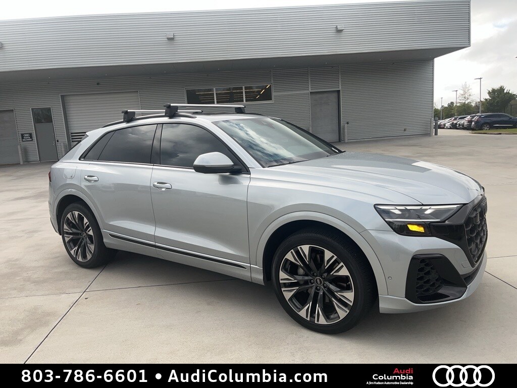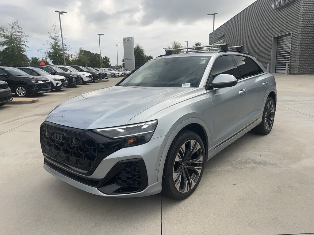 2025 Audi Q8 55 Premium Plus Clean CarFax, Local Trade, One Owner, Well Maintained, 4-Wheel Disc Brakes, 4-Zone Automatic Climate Control, 7-Pin Adapter, ABS brakes, Active Cruise Control, Adaptive suspension, Alloy wheels, Anthracite Gray Audi Rings, Auto High-beam Headlights, Automatic temperature control, Bang & Olufsen 3D Premium Sound System, Black Exterior Trim, Black Optic Package, Compass, Convenience Package, Dark Chrome Exhaust Tips, Dual front impact airbags, Dual front side impact airbags, Dual-Pane Acoustic Glass for Side Windows, Electronic Stability Control, Emergency communication system: Audi connect CARE, Executive Package (DISC), Exterior Parking Camera Rear, Front anti-roll bar, Front dual zone A/C, Front Seats w/Ventilation, Fully automatic headlights, Garage door transmitter: HomeLink, Heated door mirrors, Heated Front Bucket Seats, Heated front seats, Heated Rear Seats, Illuminated Door Sills, Illuminated entry, Leather Seating Surfaces, LED Interior Lighting Plus Package, Low tire pressure warning, Navigation System, Navigation system: Audi MMI Navigation with Touch Response, Occupant sensing airbag, Overhead airbag, Power Liftgate, Power moonroof: Panoramic, Power Rear Side Windows, Premium Plus Package, Rain sensing wipers, Rear anti-roll bar, Rear side impact airbag, Remote keyless entry, S Line Exterior, S Line Illuminated Door Sills, S Line Style Package, Steering wheel memory, Steering wheel mounted audio controls, Traction control, Trailer Hitch, Wheels: 22" 5-Double-Arm Design Bicolor Finish.