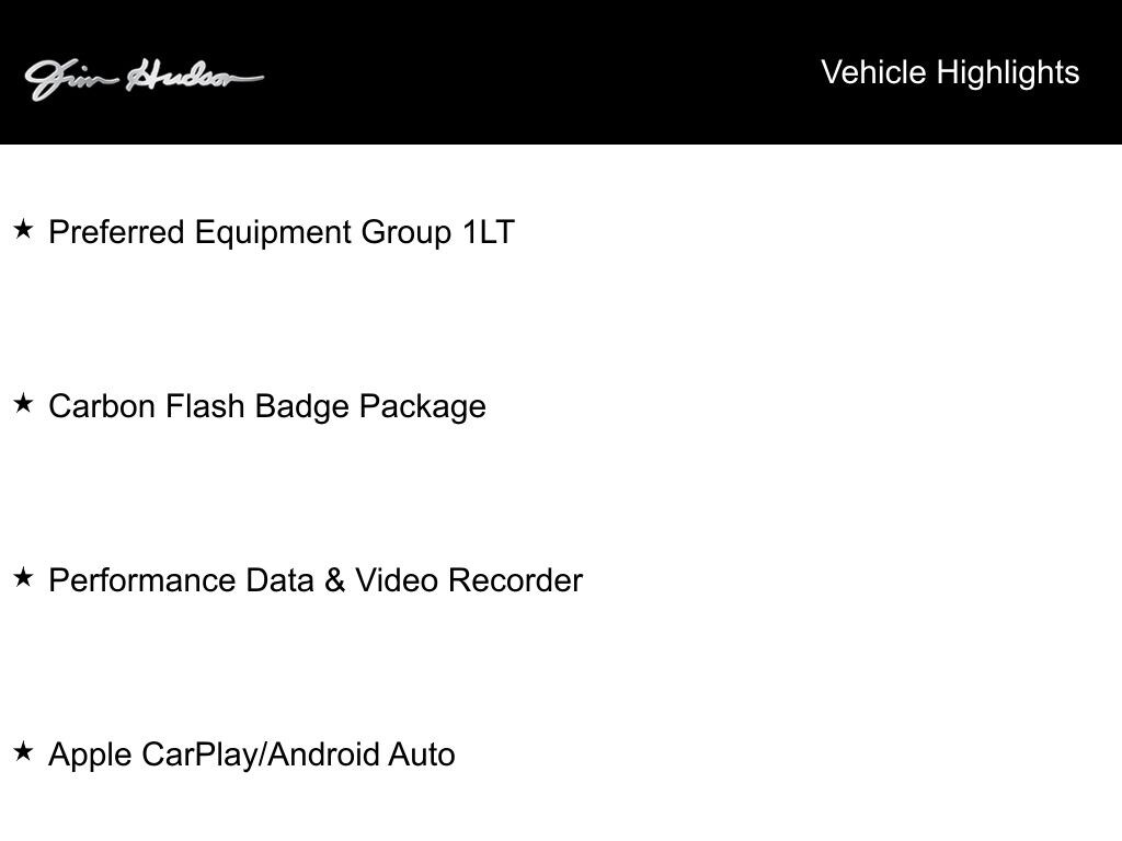 2019 Chevrolet Corvette Stingray Z51 Apple CarPlay/Android Auto, Carbon Flash Badge Package, Performance Data & Video Recorder, Preferred Equipment Group 1LT.