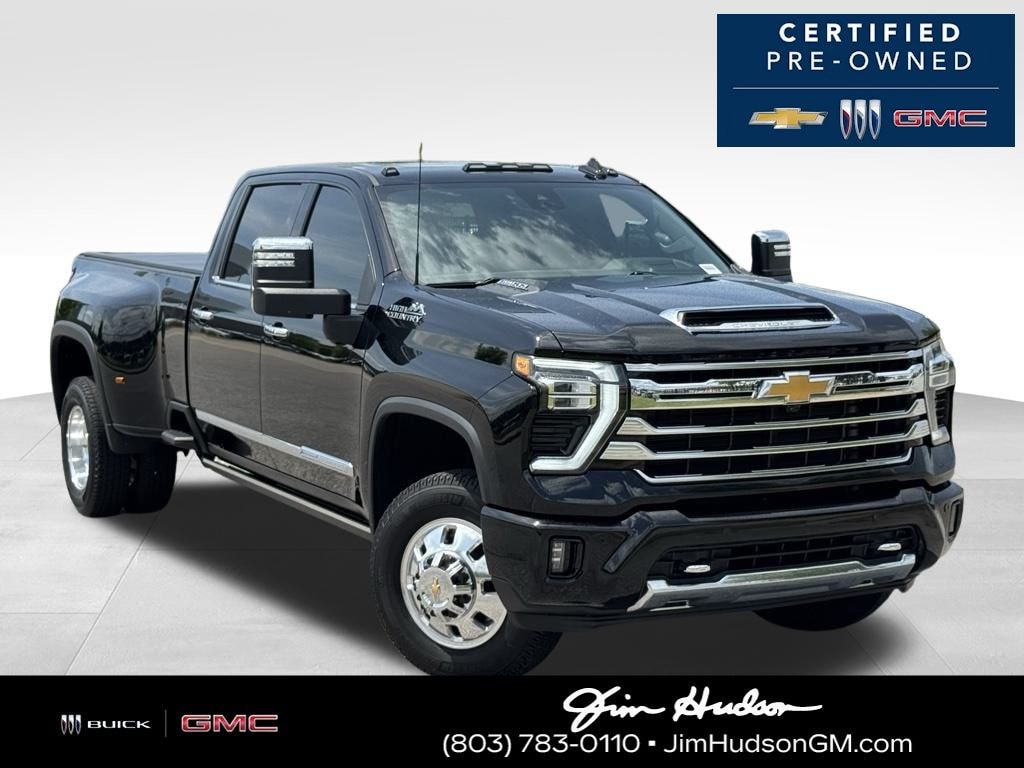 2024 Chevrolet Silverado 3500HD High Country Clean CarFax, Local Trade, One Owner, Well Maintained, Chevrolet Certified Pre-Owned Certified, 10-Speed Automatic, 4WD, Jet Black Leather, Gooseneck/5th Wheel Prep Package, High Country Premium Package, Power Sunroof, Technology Package, 10-Way Power Driver Seat Adjuster w/Lumbar, 10-Way Power Passenger Seat Adjuster w/Lumbar, 120-Volt Bed Mounted Power Outlet, 120-Volt Interior Power Outlet, 170 Amp Alternator, 3.73 Rear Axle Ratio, 4-Wheel Disc Brakes, 6" Rectangular Chromed Tubular Assist Steps, 7 Speakers, ABS brakes, Adaptive Cruise Control, Air Conditioning, Alloy wheels, AM/FM radio: SiriusXM with 360L, Apple CarPlay/Android Auto, Auto High-beam Headlights, Auto-dimming door mirrors, Auto-Dimming Inside Rear-View Mirror, Auto-Dimming Inside Rearview Mirror w/Camera, Auto-dimming Rear-View mirror, Automatic temperature control, Bed View Camera w/2 Trailer Camera Provisions, Bluetooth® For Phone, Bodyside moldings, Bose Premium 7-Speaker Sound System, Brake assist, Bumpers: body-color, Chevrolet Connected Access Capable, Chevytec Spray-On Black Bedliner, Chrome Door Handles, Chrome Mirror Caps, Color-Keyed Carpeting Floor Covering, Compass, Compass Located In Instrument Cluster, Deep-Tinted Glass, Delay-off headlights, Driver door bin, Driver Memory, Driver vanity mirror, Dual front impact airbags, Dual front side impact airbags, Durabed Pickup Bed, Electric Rear-Window Defogger, Electronic Stability Control, EZ Lift Power Lock & Release Tailgate, Floor-Mounted Center Console, Front anti-roll bar, Front Bucket Seats, Front Carpeted Floor Mats, Front Center Armrest, Front Chrome Recovery Hooks, Front dual zone A/C, Front fog lights, Front LED Fog Lamps, Front Rain-Sensing Wipers, Front reading lights, Front wheel independent suspension, Fully automatic headlights, Garage door transmitter, Genuine wood console insert, Genuine wood dashboard insert, Genuine wood door panel insert, Gooseneck/5th Wheel Package (DISC), Heated 2nd Row Outboard Seats, Heated door mirrors, Heated Driver & Front Outboard Passenger Seats, Heated front seats, Heated rear seats, Heated Steering Wheel, Heated steering wheel, Heavy-Duty 80 Amp-Hr Battery, High Idle Switch, Hitch Guidance w/Hitch View, Illuminated entry, In-Vehicle Trailering App System, Keyless Open & Start, LED Cargo Area Lighting, Low tire pressure warning, Manual Tilt-Wheel/Telescoping Steering Column, Memory seat, Multi-Flex Tailgate, Multicolor 15" Diagonal Head-Up Display, Occupant sensing airbag, OnStar & Chevrolet Connected Services Capable, Outside temperature display, Overhead airbag, Overhead console, Panic alarm, Passenger door bin, Passenger vanity mirror, Perforated Leather Seating Surfaces, Polished Exhaust Tip, Power Door Locks, Power door mirrors, Power driver seat, Power Front Windows w/Driver Express Up/Down, Power Front Windows w/Passenger Express Up/Down, Power passenger seat, Power Rear Windows w/Express Down, Power Sliding Rear Window w/Defogger, Power steering, Power Tailgate, Power windows, Power-Retractable Assist Steps, Preferred Equipment Group 3LZ, Premium audio system: Chevrolet Infotainment 3 Premium, Push Button Start, Radio: Chevrolet Infotainment 3 Premium System, Rain sensing wipers, Rear Carpeted Floor Mats, Rear Cross Tr