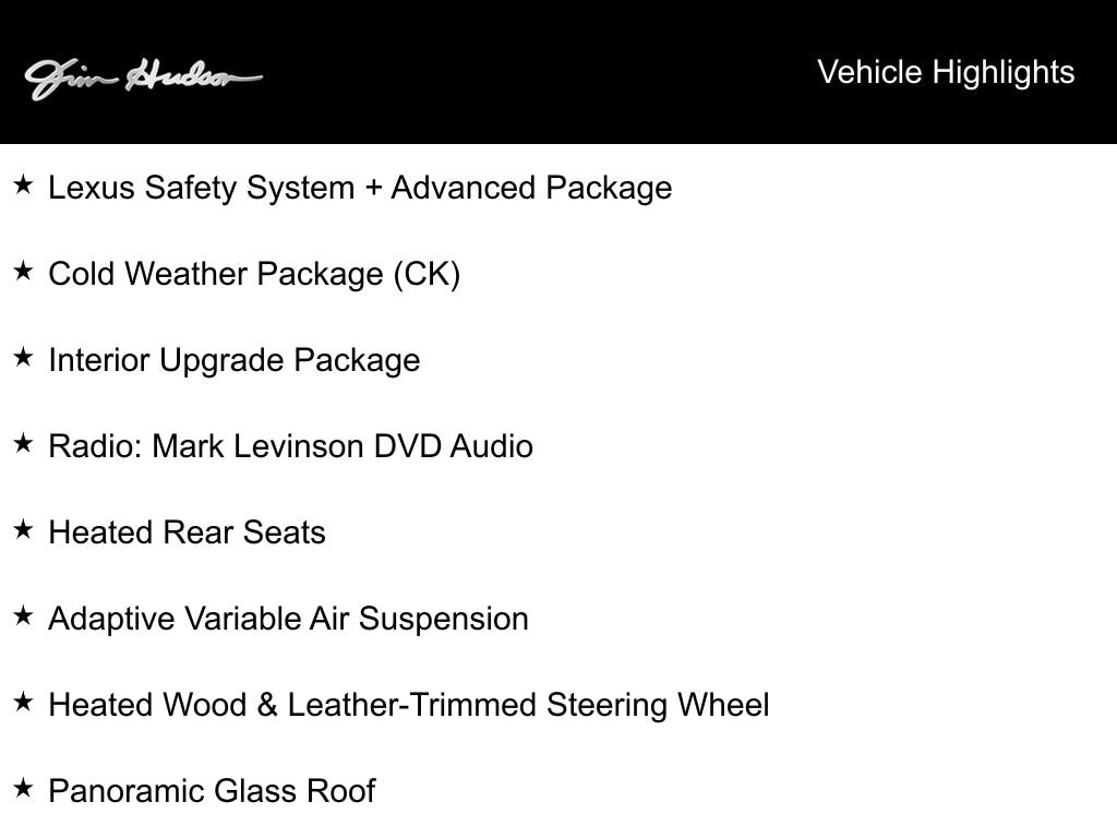 2018 Lexus LS 500 Chateau w/Semi-Aniline Leather Seat Trim, 24" Heads-Up Display (HUD) (GF), Adaptive Variable Air Suspension, Cold Weather Package (CK), Driver Seat Vibration, Heated Rear Seats, Heated Wood & Leather-Trimmed Steering Wheel, Interior Upgrade Package, LED Headlamps w/Adaptive Front Lighting System, Lexus Safety System + Advanced Package, Panoramic Glass Roof, Panoramic View Backup Monitor, Premium Wood Trim, Radio: Mark Levinson DVD Audio, Semi-Aniline Leather Seat Trim, Ultra Suede Headliner.